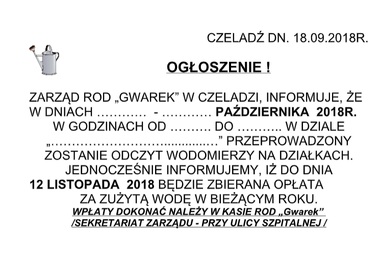 Daty ustalą gospodarze poszczególnych terenów i poinformują na tablicach ogłoszeń. 21 września 2018 Admin Ogłoszenia ROD