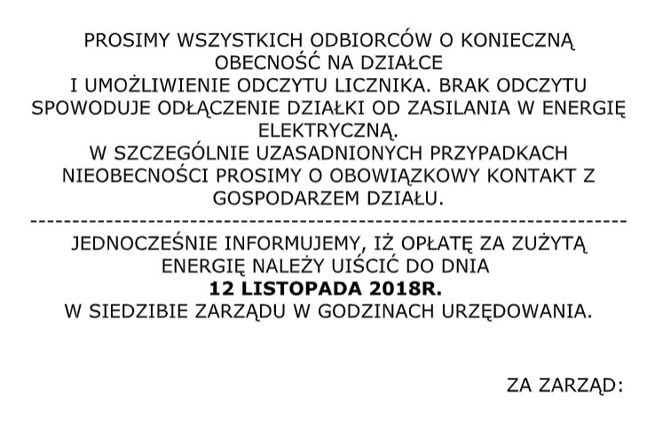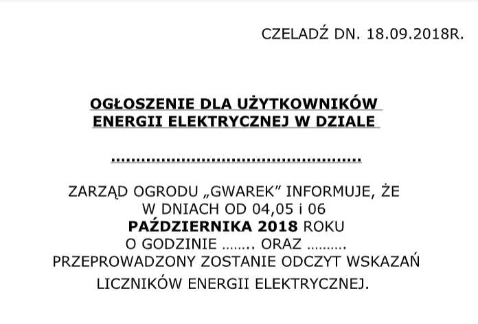 Godziny ustalą gospodarze poszczególnych terenów i poinformują na tablicach ogłoszeń. 21 września 2018 Admin Ogłoszenia ROD